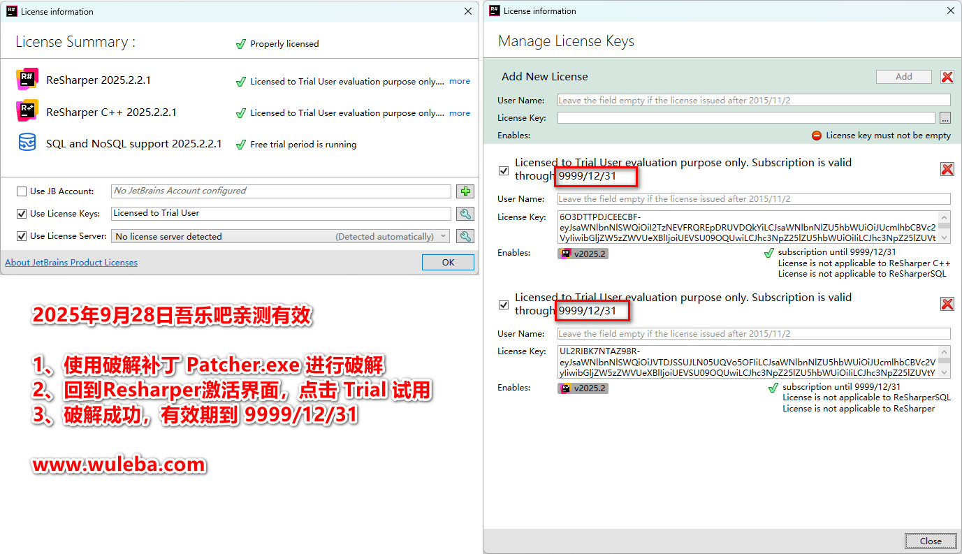 本破解补丁适用于dotUltimate(原名为Resharper Ultimate)2025.x~2022.x版本。