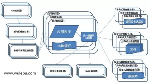 描述:随着业务越来越复杂,对数据存储和检索的需求也越来越复杂,系统需要采用一些非关系型数据库如NoSQL和分数据库查询技术如搜索引擎。应用服务器通过统一数据访问模块访问各种数据,减轻应用程序管理诸多数据源的麻烦。