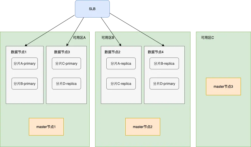 - 数据节点:需要保持各个可用区之间节点对等,以保证数据的平衡;使用分区感应把主副分片隔开,保持在不同可用区内。