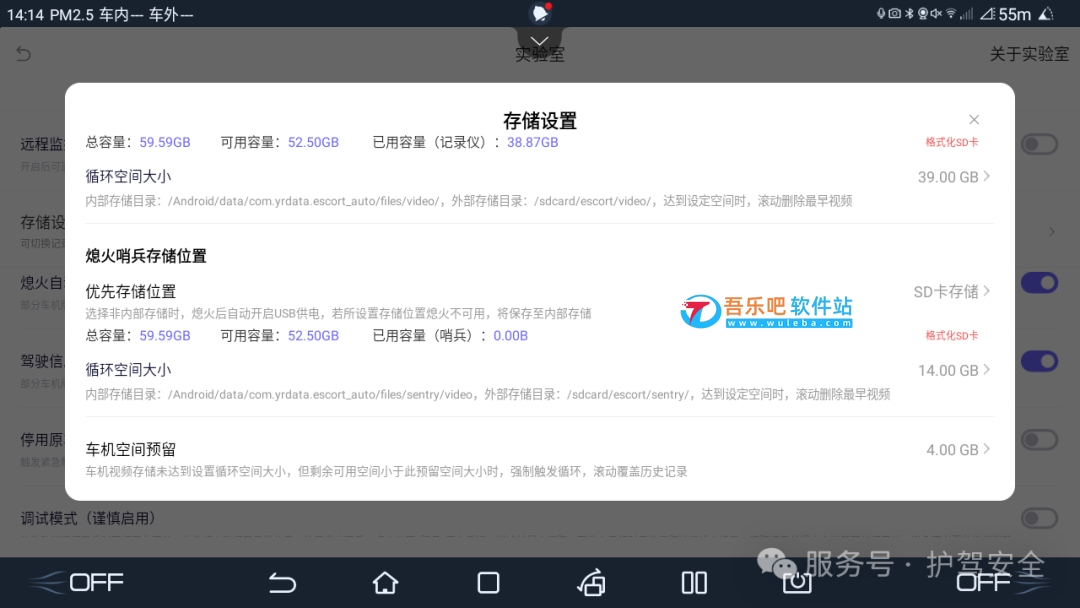 吾乐吧软件站提醒大家:护驾行车记录仪,最大的特点是“完全免费”,也可以支持熄火供电,可以把视频保存到SD存储卡或者USB中,而且还可以查看行车记录仪“回放”视频,这一点是很多其他软件都不支持的~~